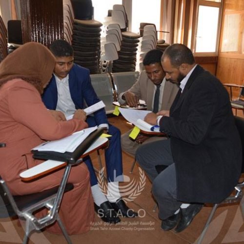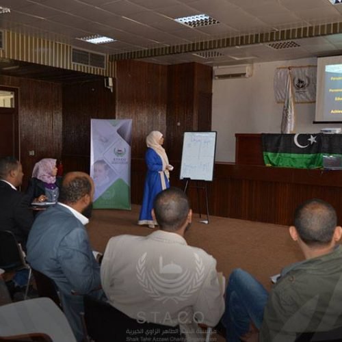 This workshop was attended by a group of state sector employees, including (Libyana Company – Al Madar Company – Social Security Fund – Price Stabilization Fund – Ministry of Health Sebha – Health Services Sebha – Sebha Local Council – General Bar Association) and a number of employees and members of the Sheikh Al-Taher Al-Zawi Charitable Foundation .