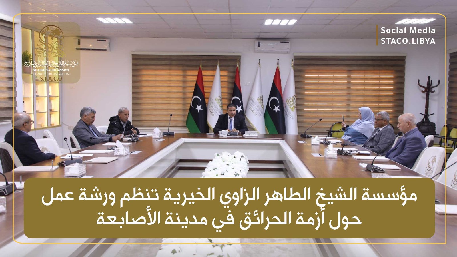 Sheikh Taher Al-Zawi Charitable Foundation organizes a workshop on the fire crisis in the city of Al-Asabaa