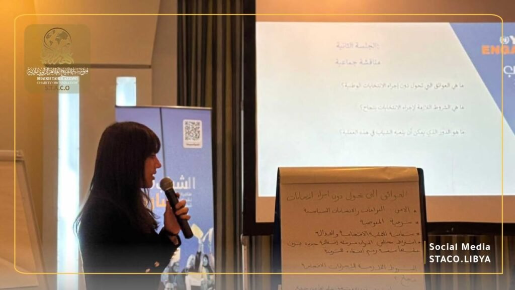 As part of its initiatives to support the path of free and fair elections in Libya, the Head of the Women’s Empowerment Office at Sheikh Taher Al-Zawi Charity Foundation (STACO) participated in a dialogue session entitled “Youth Participation in Political Dialogue”, organized by the United Nations Support Mission in Libya (UNSMIL).