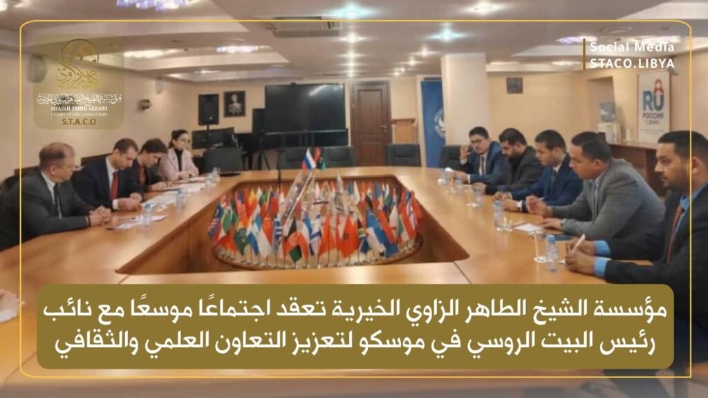 The meeting discussed avenues for scientific and academic cooperation, the exchange of expertise and experiences in the fields of education, culture, and humanitarian work, as well as the possibility of holding joint events and training workshops that serve sustainable development goals and support communication between Libyan and Russian institutions.