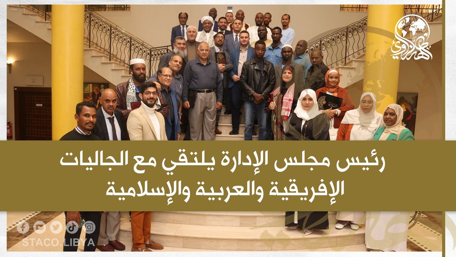 The Chairman of the Board of Directors of The Sheikh Tahir organization, Engineer Salem Al-Qammoudi, met with the heads of the African, Arab, and Islamic communities in Libya.