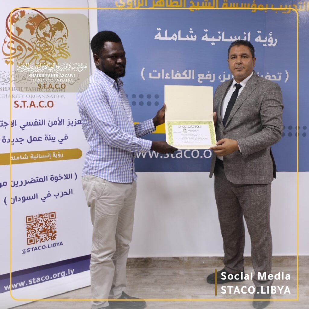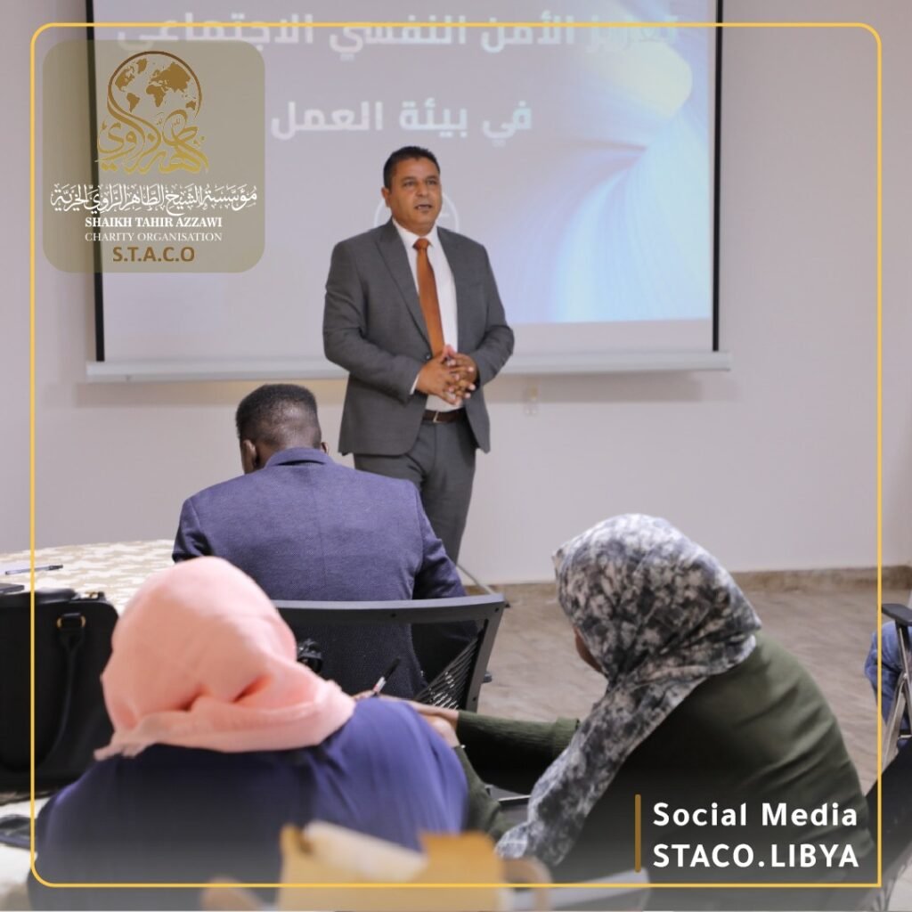Under the theme “A Comprehensive Humanitarian Vision to Stimulate and Enhance Competencies,” the Human Resources Development and Training Department at Sheikh Al-Taher Al-Zawi Foundation organized a training session titled “Enhancing Psychosocial Security in an Emergency Work Environment.”