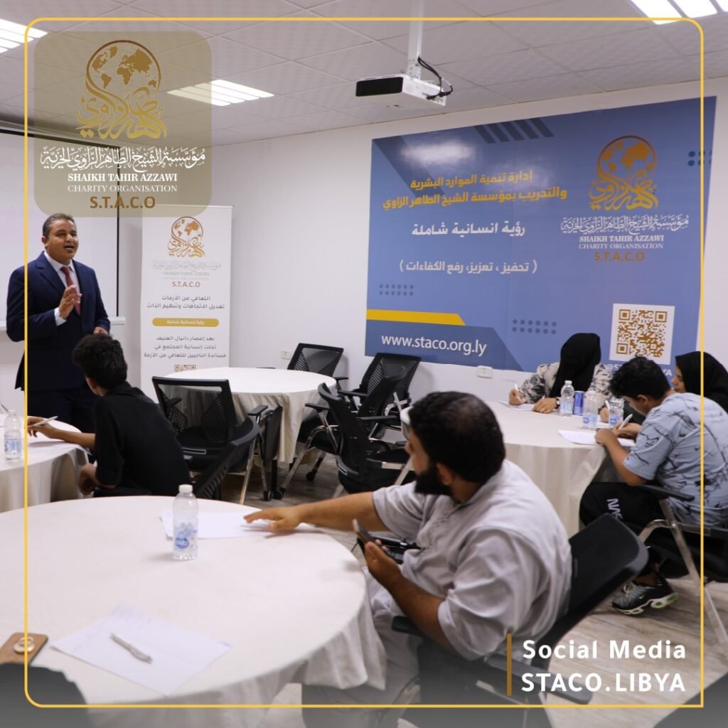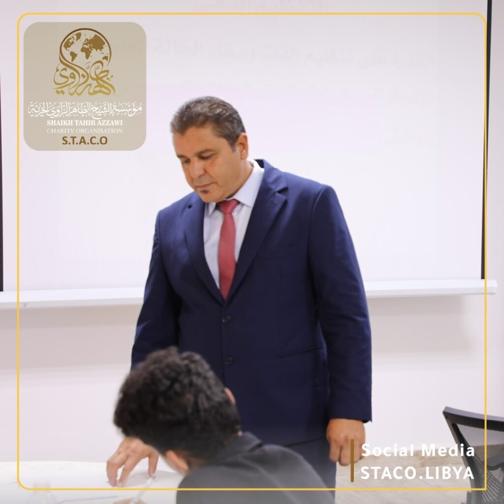 As part of its ongoing efforts in charitable and humanitarian work, the Training Department at the Sheikh Al-Taher Al-Zawi Foundation organized a distinguished training session focused on crisis recovery and self-organization. The session was led by coach Dr. Othman Ali Homs under the theme “Voluntary Charitable Work: A Comprehensive Humanitarian Vision.” This session targeted survivors of the catastrophic Daniel’s Hurricane and those affected by its severe aftermath, aiming to provide them with the necessary support and assistance.
