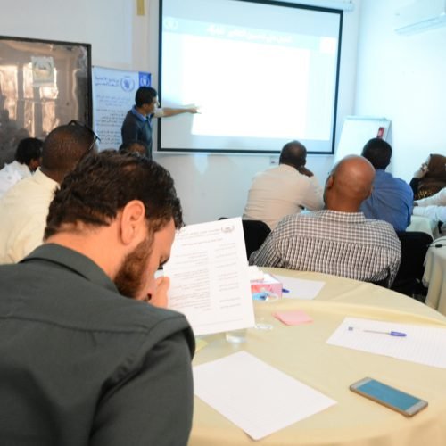 With the support of the World Food Program (WFP), the Sheikh Al-Taher Al-Zawi Charitable Foundation – Sebha office held a training workshop for the food security project team in the organization in the south (Al-Shati – Sabha – Traghen – Al-Qatrun – Ubari – Murzuq – Ghat) and members of the distribution committees of the (WFP) project, as well as delegates southern regions.